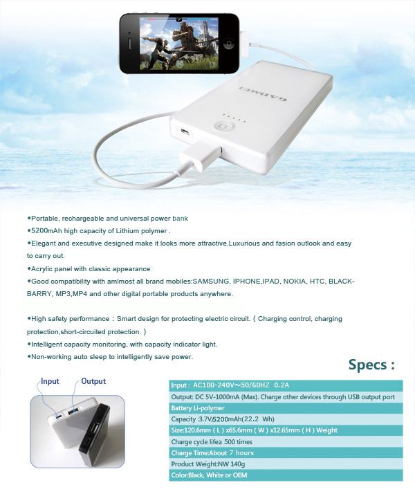 ?Capacity :3.7V/5200mAh(22.2Wh)